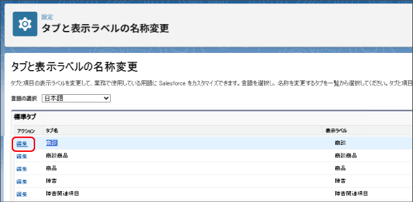 この方法で、Salesforce標準項目のラベル名を変更することが可能です。