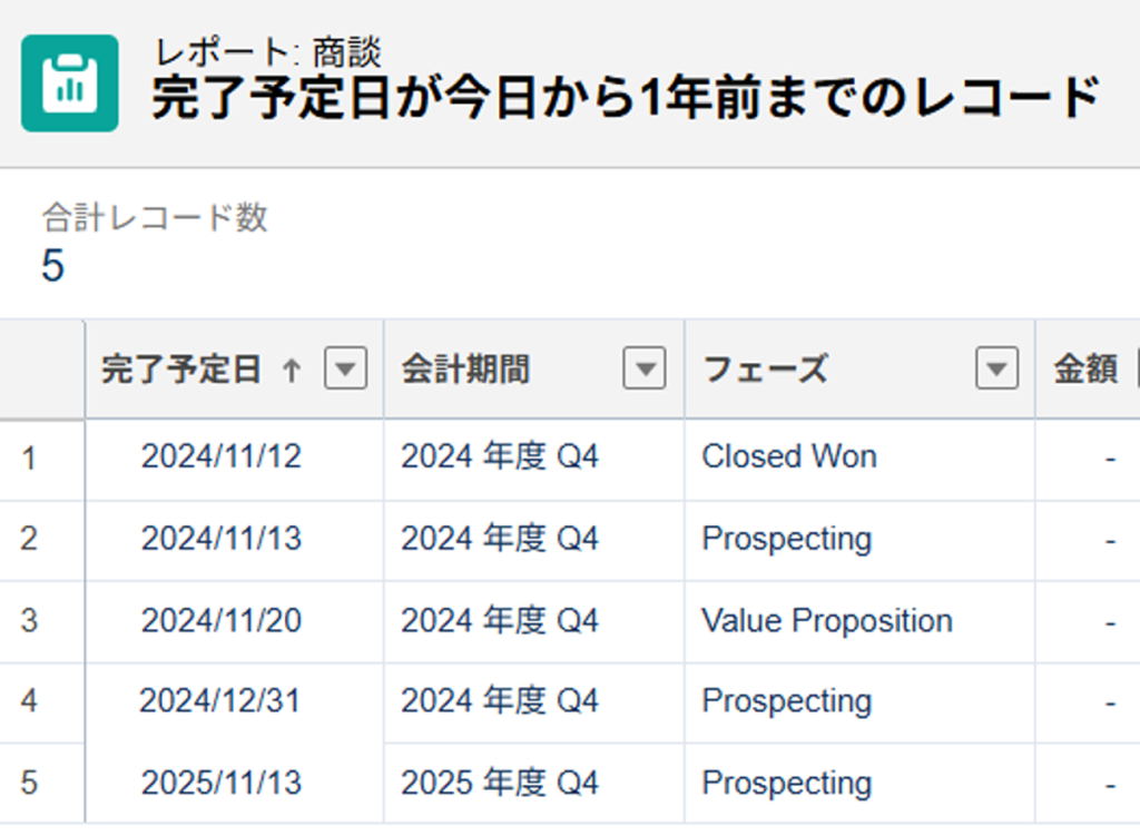 これで、過去1年間のデータをレポートで抽出できるようになりました。